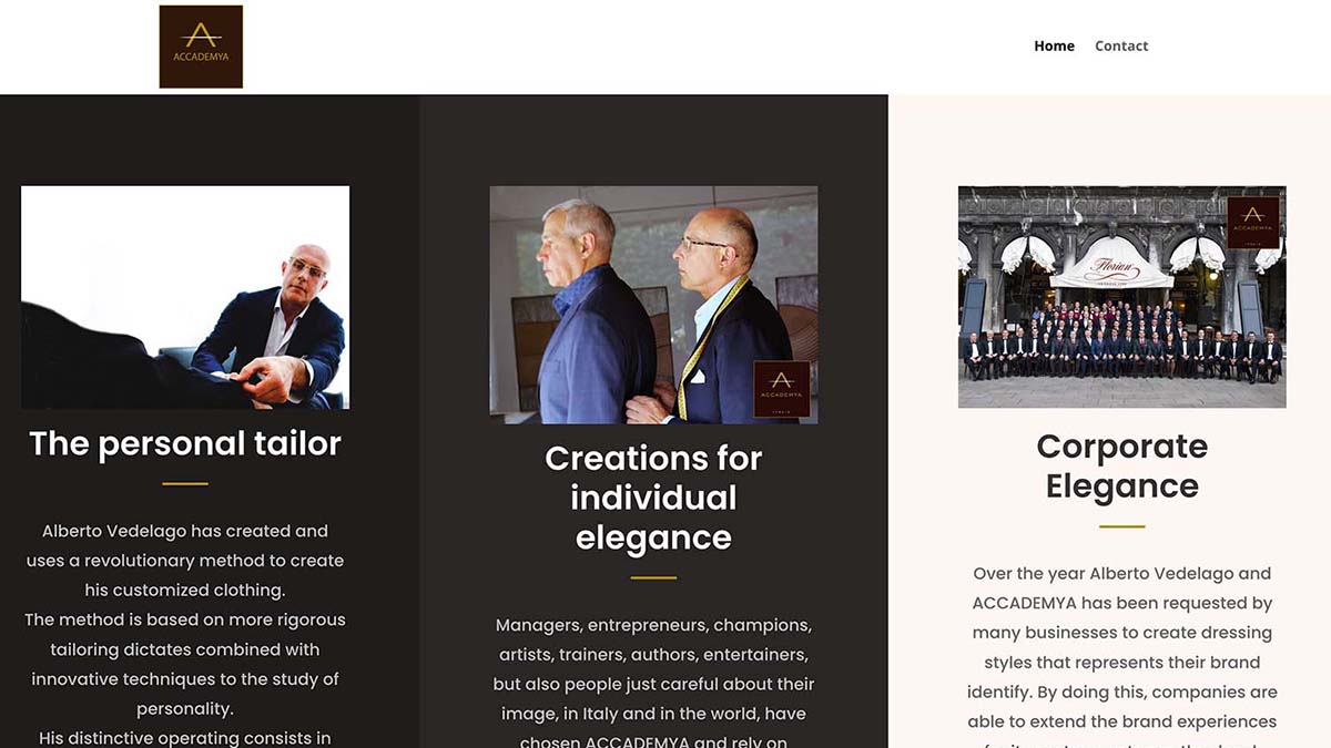 For renowned Italian designer Alberto Vedelago, we created a digital embodiment of his luxurious brand. Specialising in bespoke suits, shirts, shoes, and more, Vedelago’s clientele includes the affluent and famous from around the globe. Our task was to capture the essence of his brand in a minimalistic, yet elegant, “online business card”.